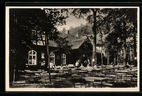 AK Lübbenau /Spreew., Gasthaus Wotschofska, Gartenansicht