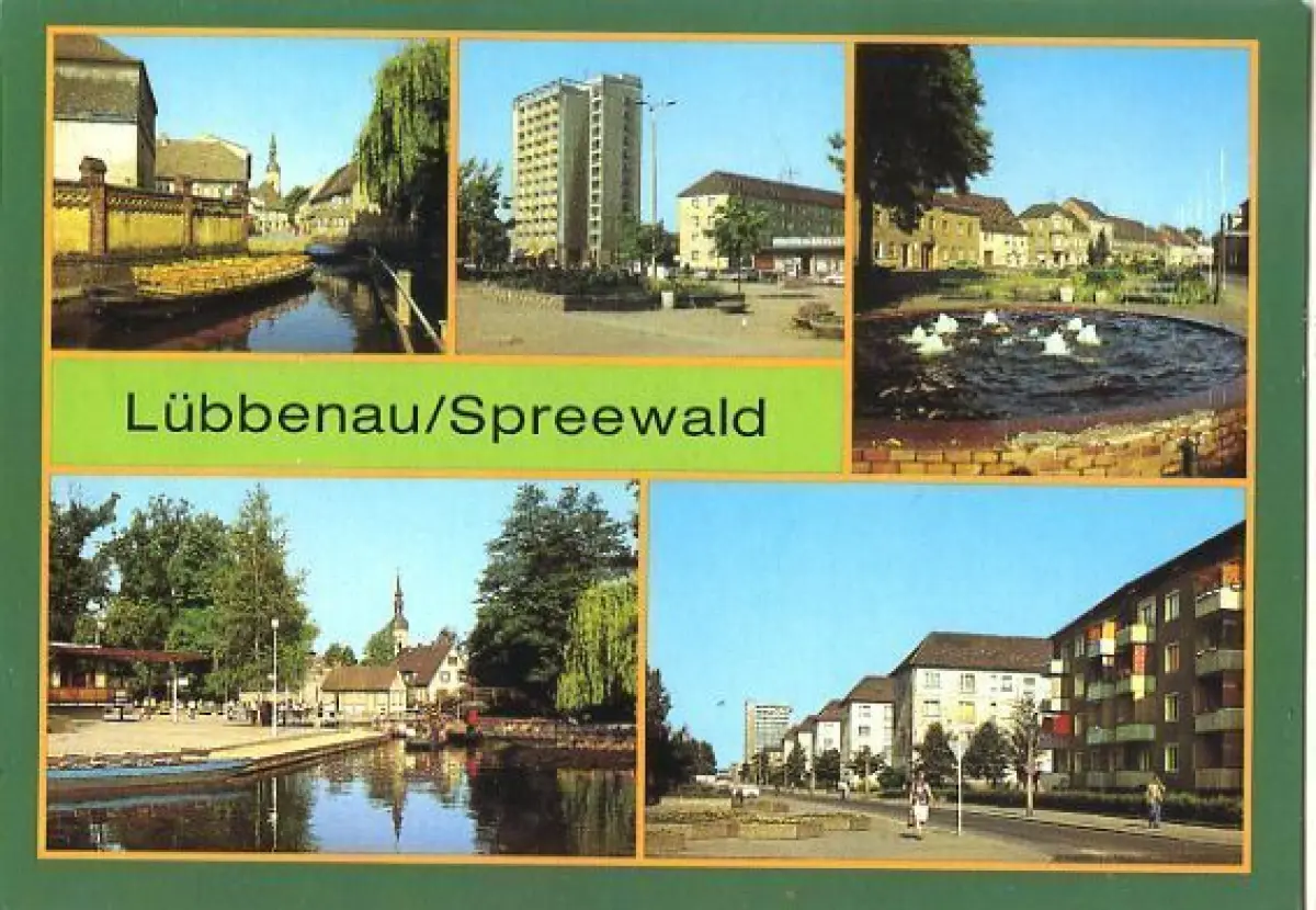5 Abb.: Hafeneck, Roter Platz, Markt, Spreewaldhafen der Freundschaft, Straße der Jugend