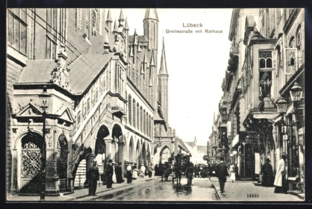 AK Lübeck, Breite Strasse mit Rathaus