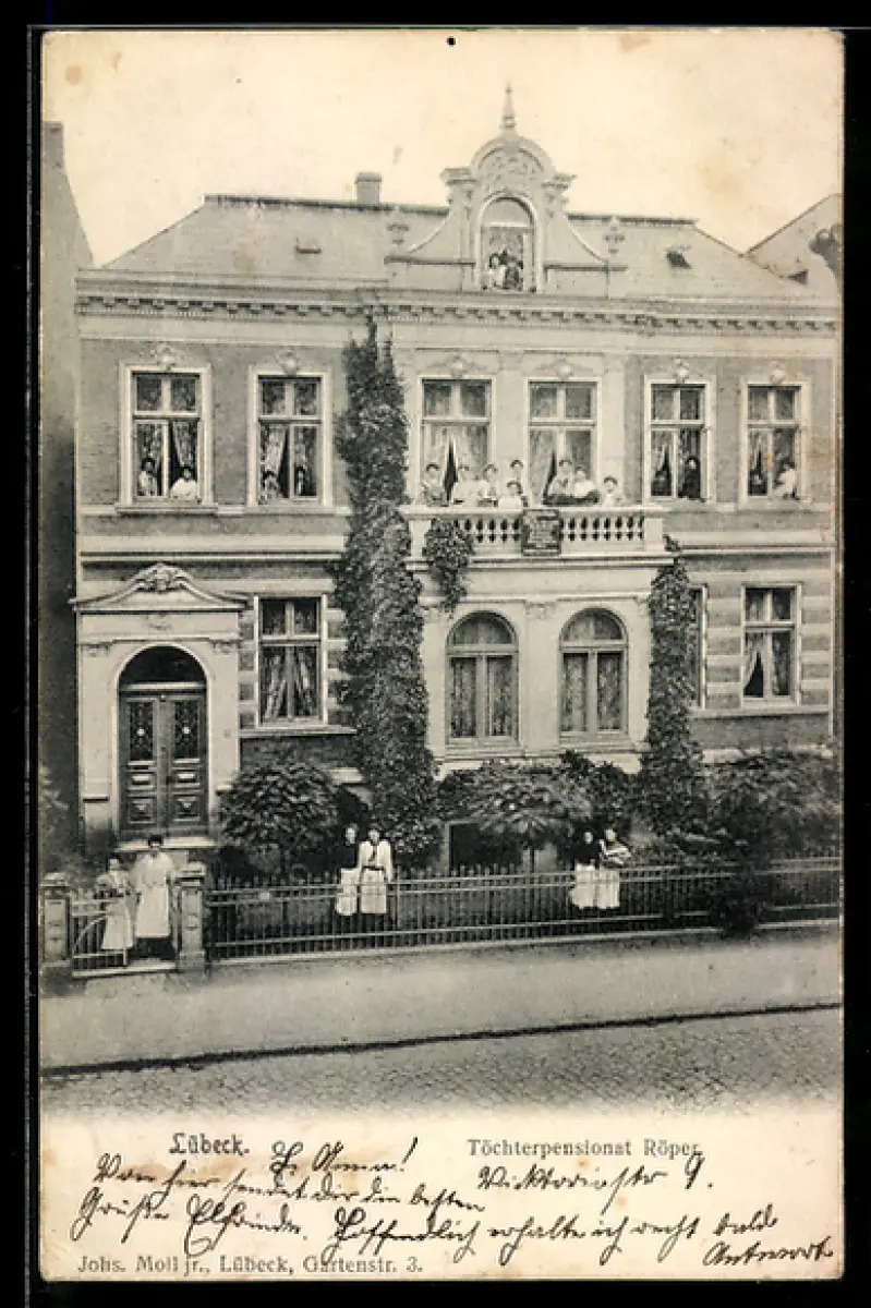 AK Lübeck, Frontalansicht vom Töchterpensionat Röper