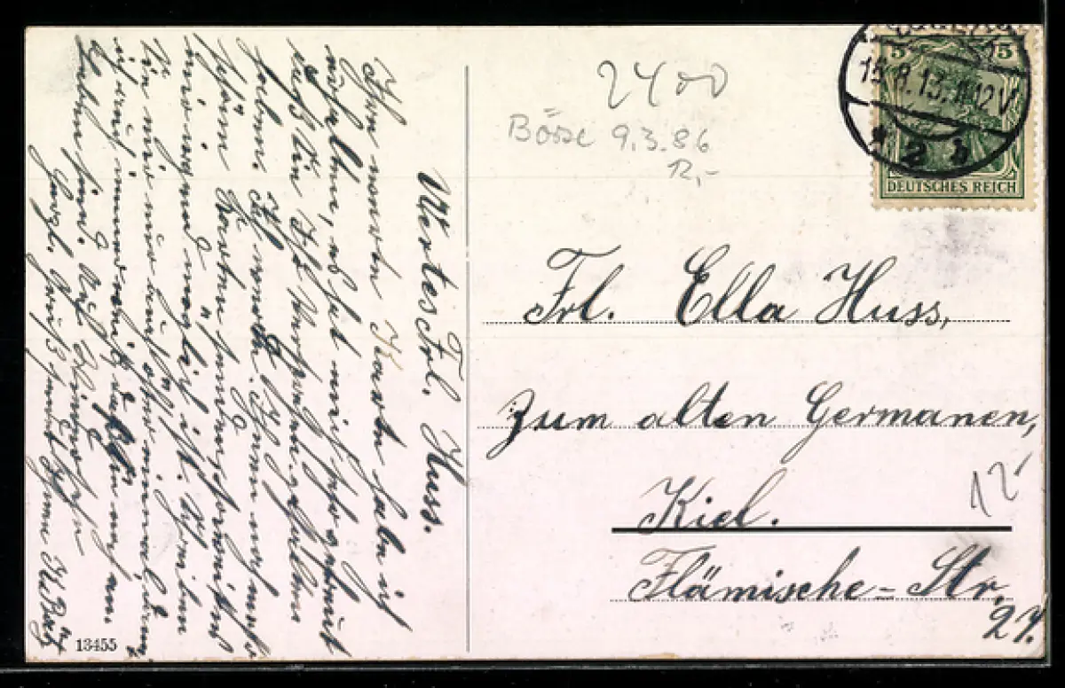 alte Ansichtskarte, gelaufen 1913, Eckknicke li., guter Zustand