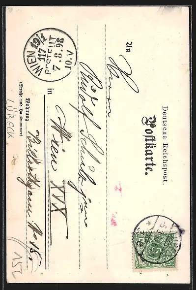 alte Ansichtskarte, gelaufen 1898, Eckknick unten re., guter Zustand