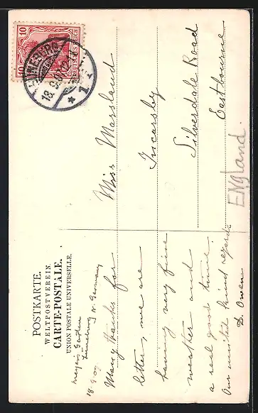 alte Ansichtskarte, gelaufen 1907, Eckknick li. unten, guter Zustand