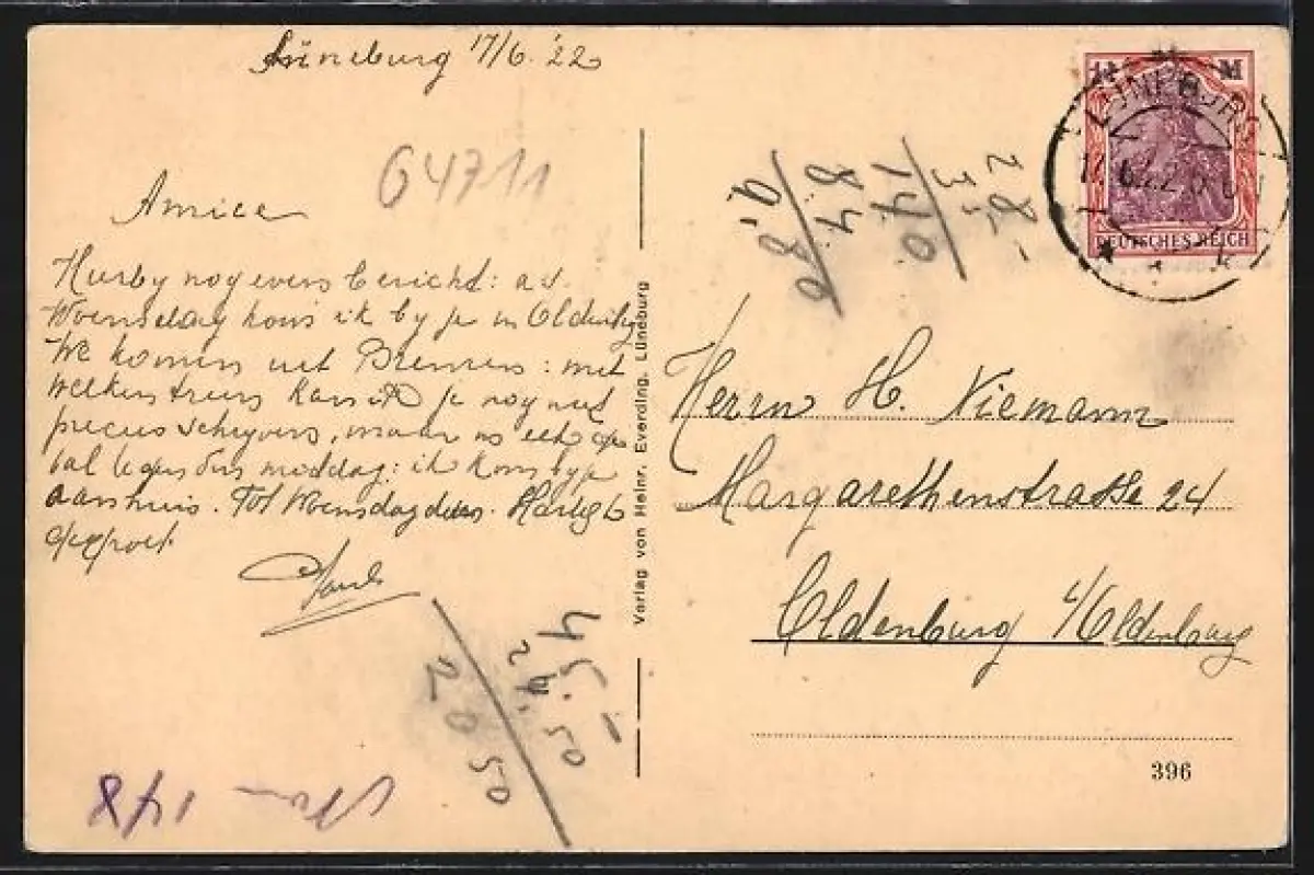 alte Ansichtskarte, gelaufen 1922, Stempelspur, guter Zustand
