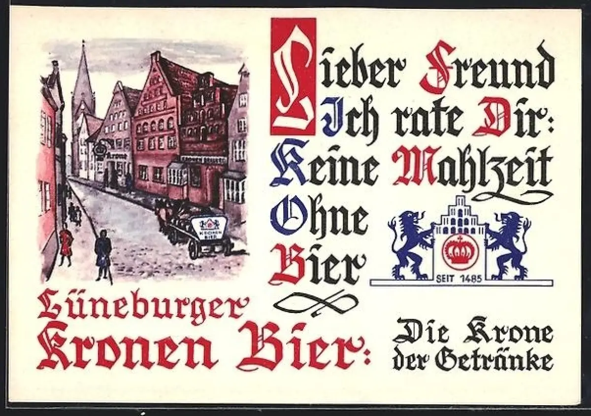 AK Lüneburg, Strassenansicht, Werbung Lüneburger Kronen Bier
