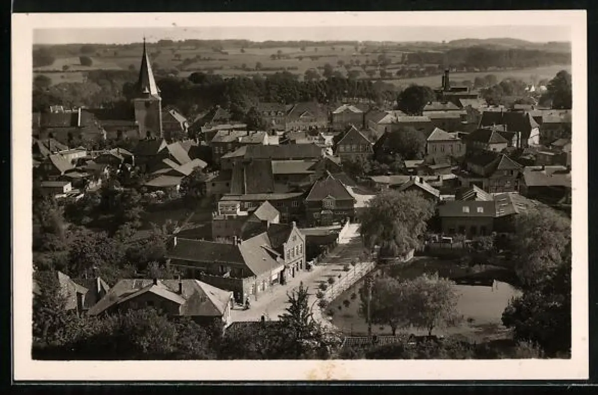 AK Lütjenburg /Ostholstein, Ortsansicht mit Kirche und Teich