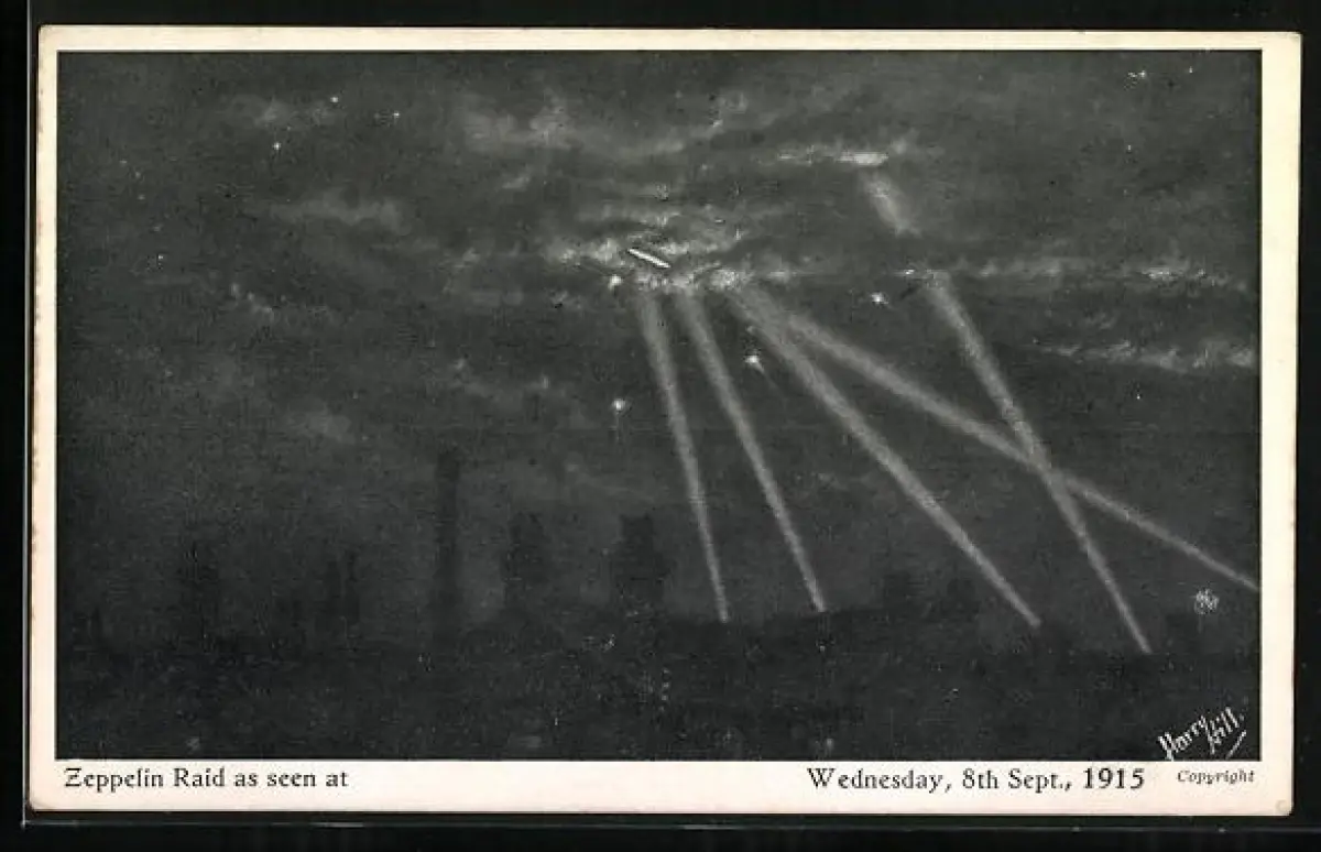 AK Luftangriff durch deutschen Zeppelin 1915