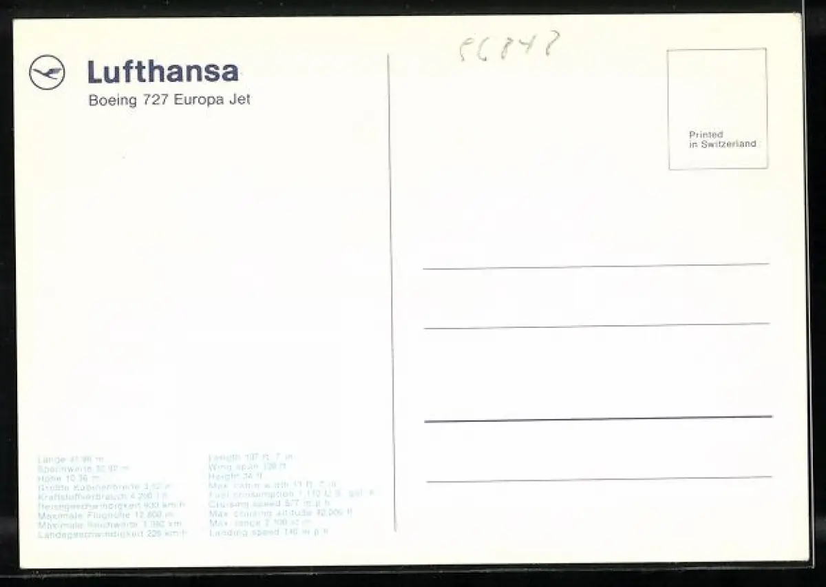 AK Lufthansa-Flugzeug Boeing 727 Europa Jet in der Luft