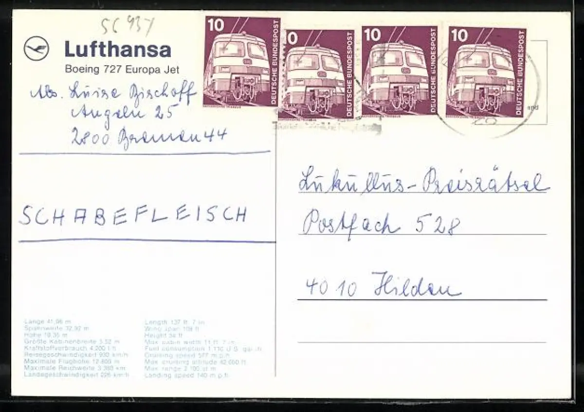 AK Lufthansa-Flugzeug Boeing 727 Europa Jet in der Luft