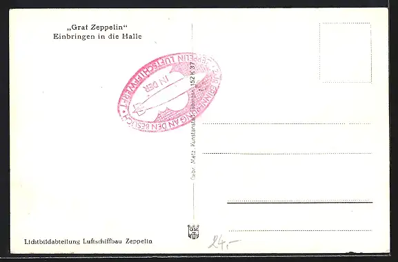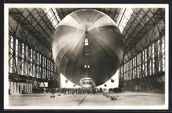 AK Luftschiff Graf Zeppelin LZ 127, Einbringen in der Halle
