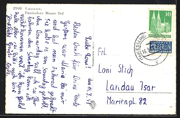 alte Ansichtskarte, gelaufen 1951, guter Zustand