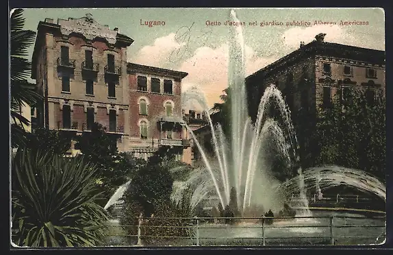 AK Lugano, Getto d`acqa nel giardino publico Albergo Americana