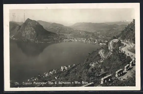 AK Lugano, Panorama, Mte. S. Salvatore e Mte. Rosa
