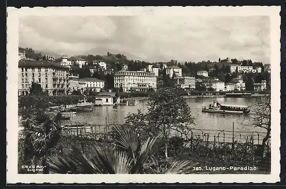 AK Lugano-Paradiso, Dampfer auf dem Wasser, Ortsansicht