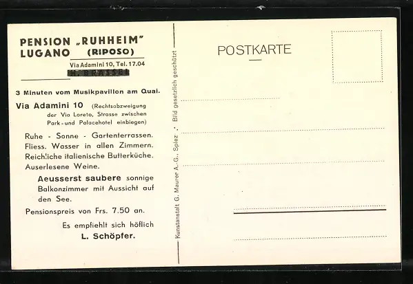 AK Lugano, Pension Ruhheim, Via Adamini 10
