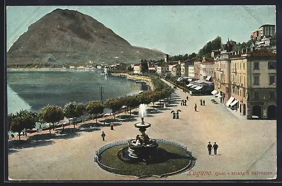 AK Lugano, Quai e Monte S. Salvatore, um 1900