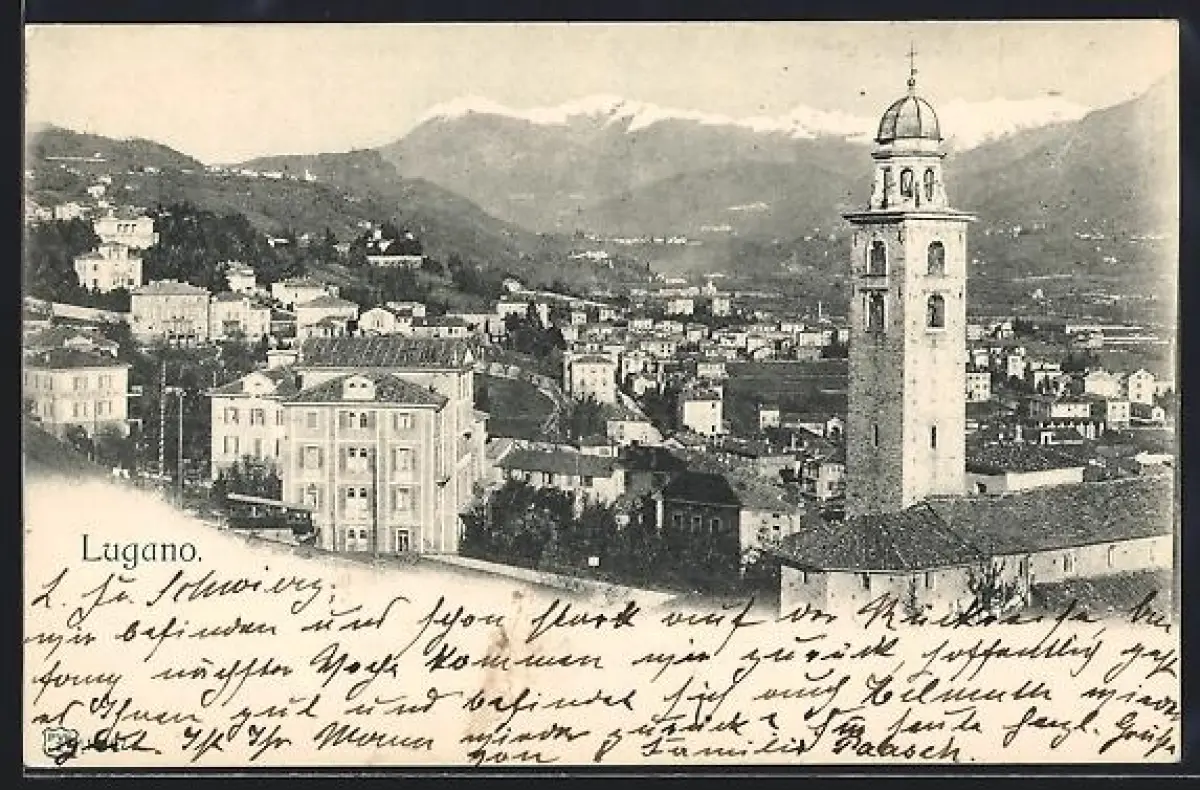AK Lugano, Totalansicht mit Turm