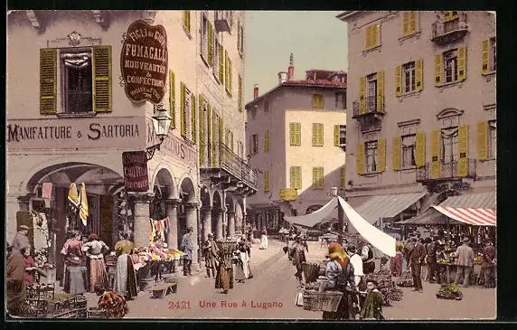 AK Lugano, Une Rue, Strassenpartie