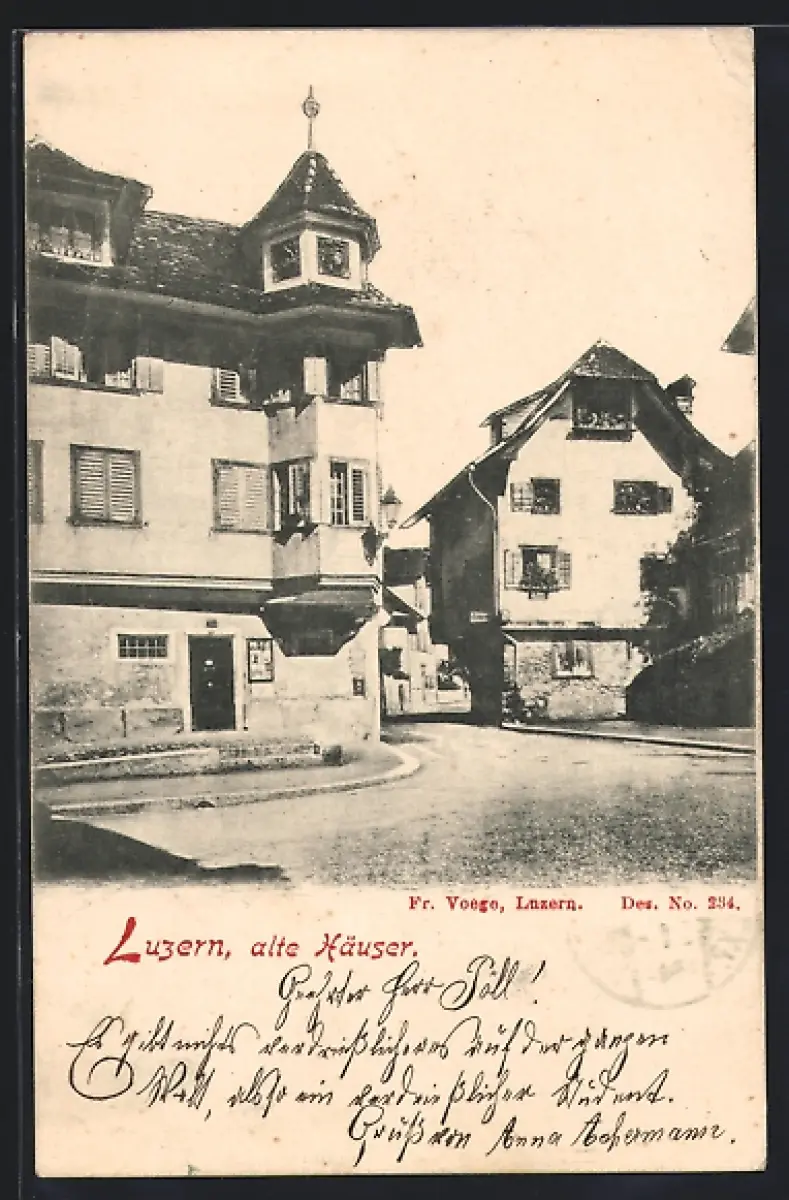 AK Luzern, Alte Häuser mit Strassenpartie