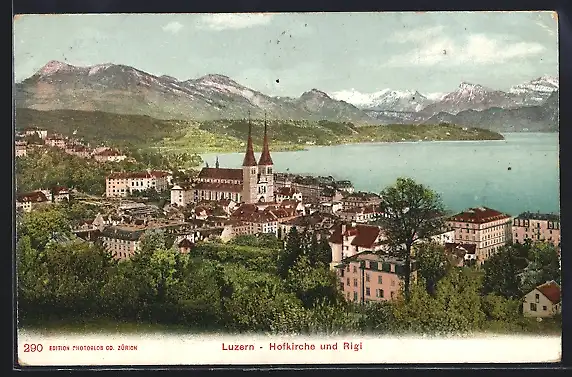 AK Luzern, Hofkirche und Rigi