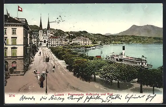 AK Luzern, Promenade, Hofkirche & Rigi