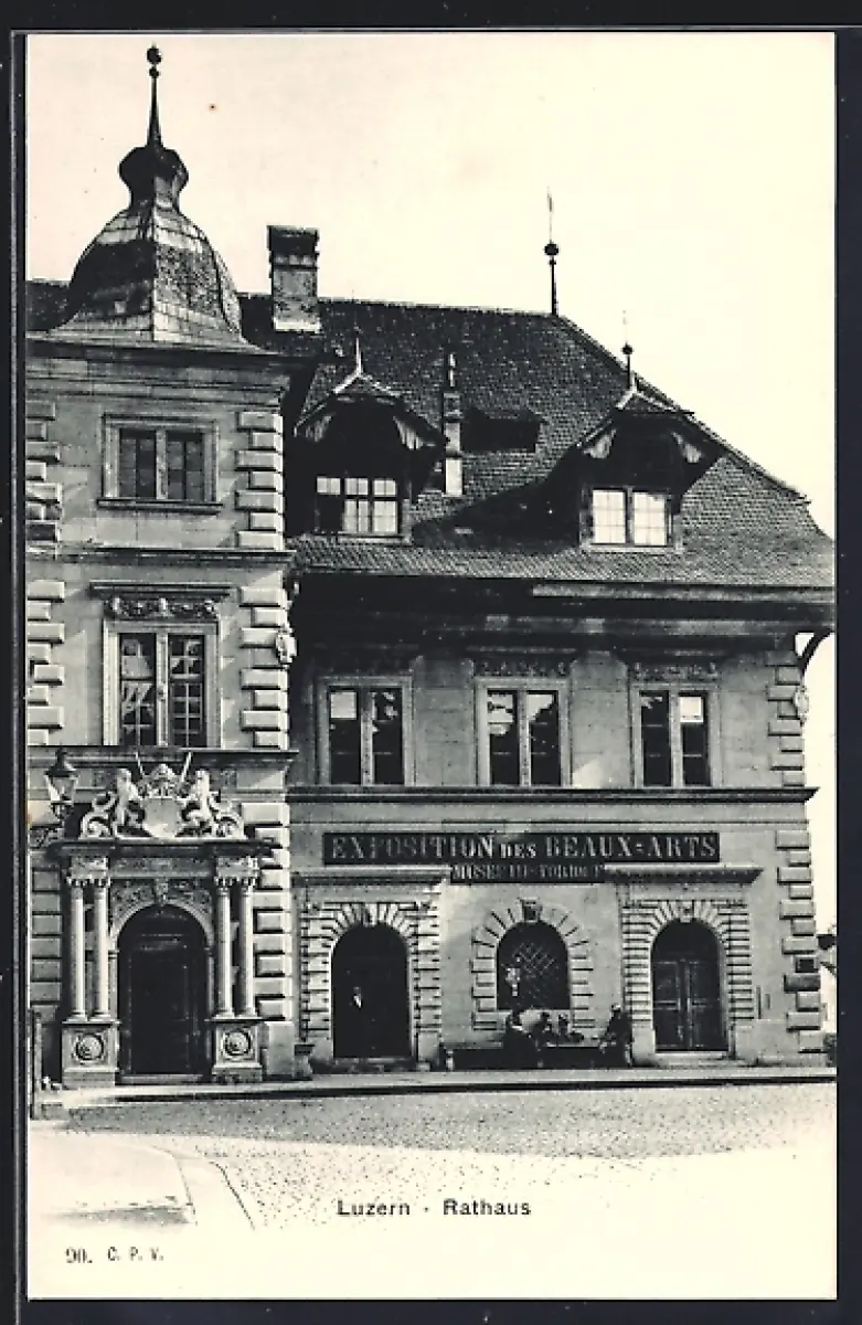 AK Luzern, Rathaus mit Exposition des Beaux-Arts
