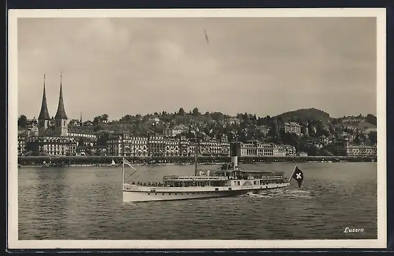 AK Luzern, Salondampfer Unterwalden vor der Stadt