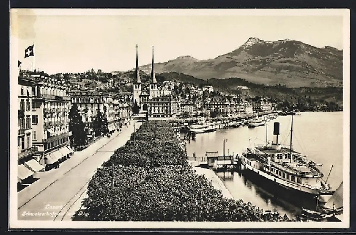 AK Luzern, Schweizerhofquai mit Rigi