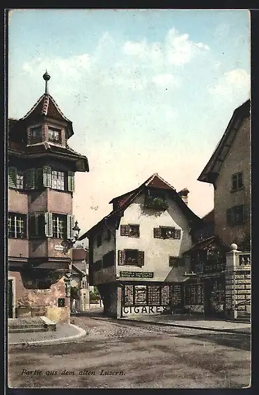 AK Luzern, Strassenpartie mit Cigarren Handlung