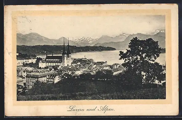 AK Luzern, Teilansicht mit Kirche und Alpen