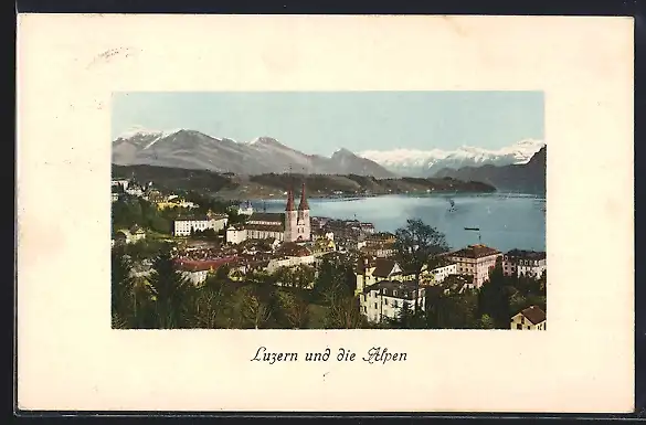 AK Luzern, Totalansicht mit Alpen aus der Vogelschau
