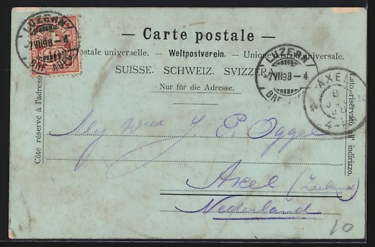 alte Ansichtskarte, gelaufen 1898, Eckknick unten re., rückseitig Oberflächenschaden, Stempelspur, guter Zustand