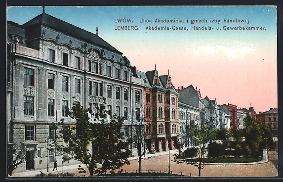 AK Lwów, Ulica Akademicka i gmach izby handlowej