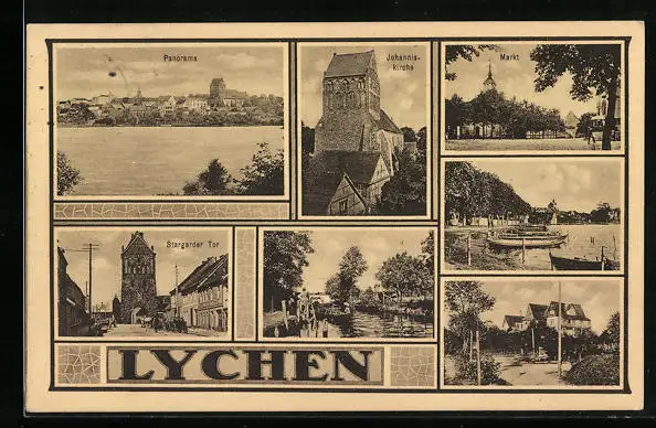 AK Lychen, Markt, Stargarder Tor, Johanniskirche