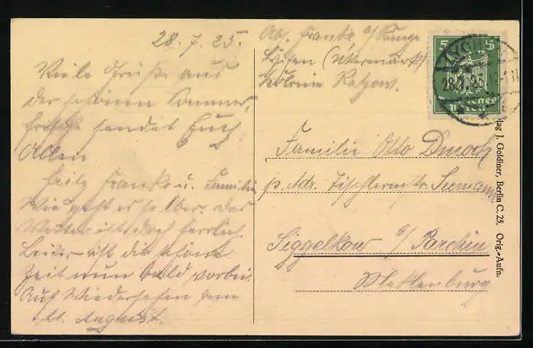 alte Ansichtskarte, gelaufen 1925, guter Zustand