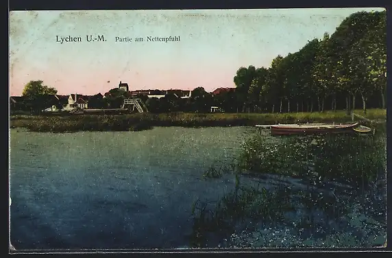 AK Lychen U.-M., Partie am Nettenpfuhl mit anliegenden Booten