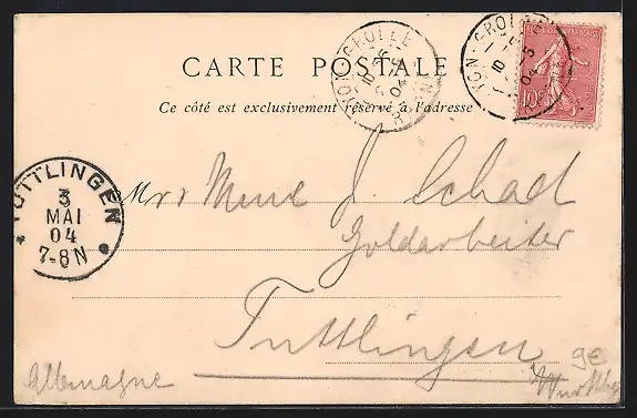 alte Ansichtskarte, gelaufen 1904, Eckknick unten re., guter Zustand
