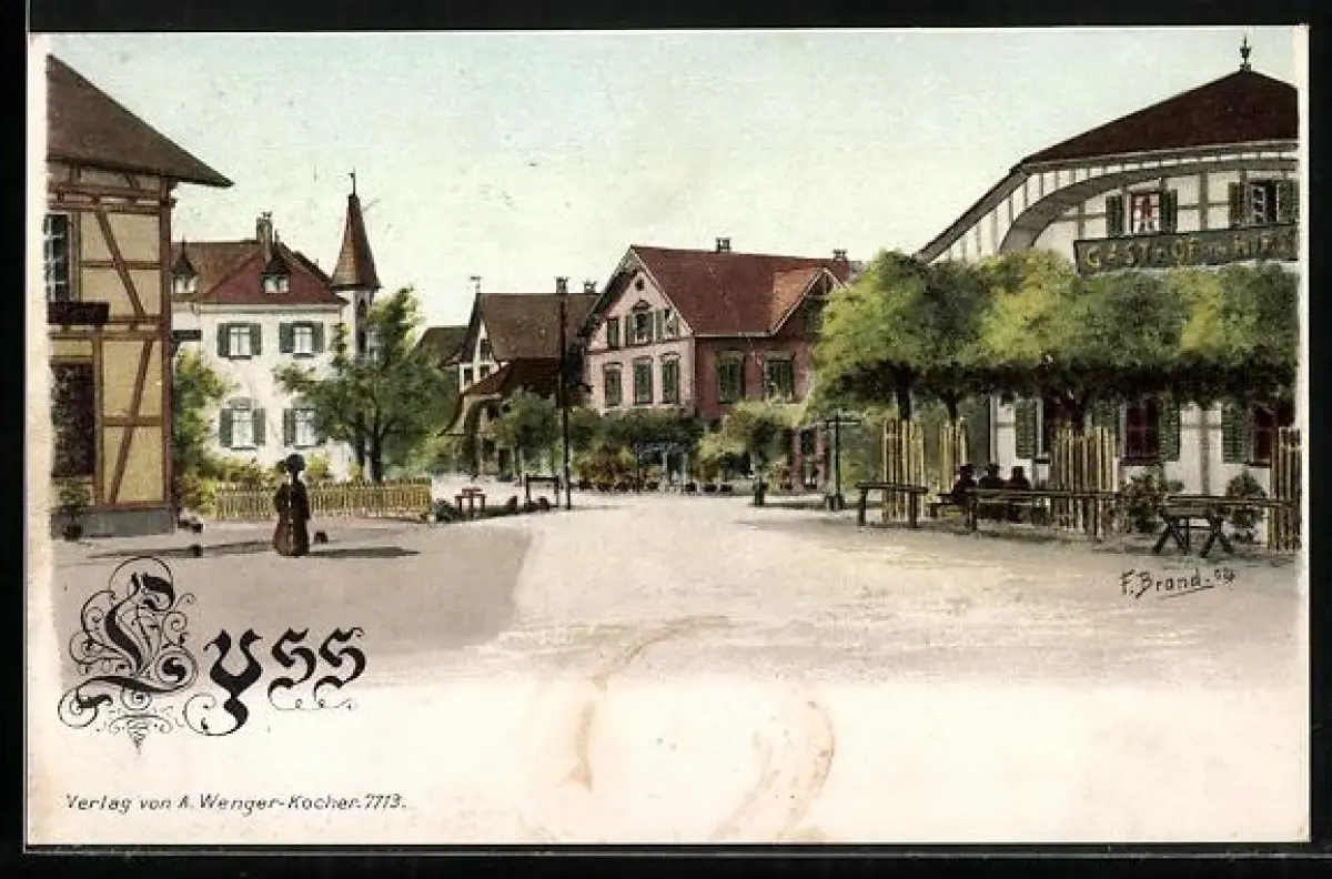 AK Lyss, Ortspartie mit Gasthof zum Hirschen