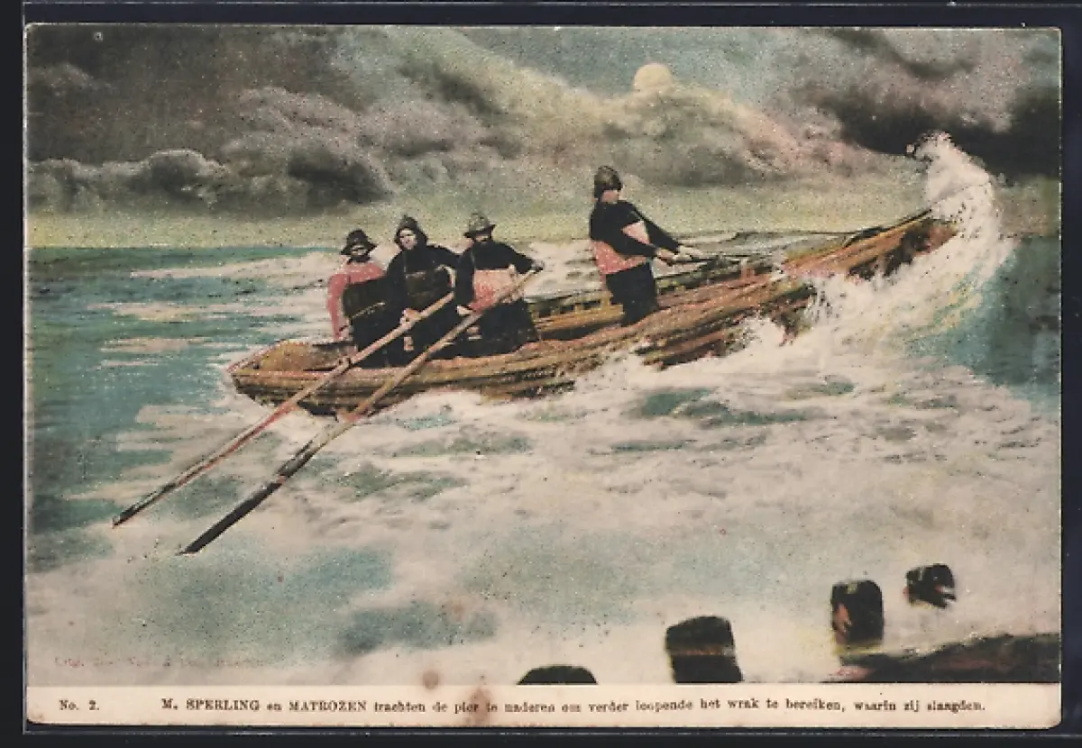 AK M. Sperling en Matrosen trachten de pier naderen om verder loopende het wrak te bereiken, Seenotrettung