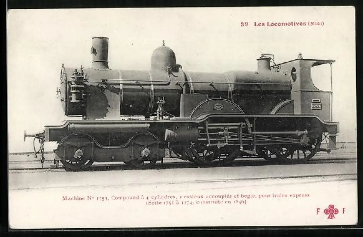AK Machine No 1753, Compound à 4 cylindres, Les Locomotives (Midi), französische Eisenbahn