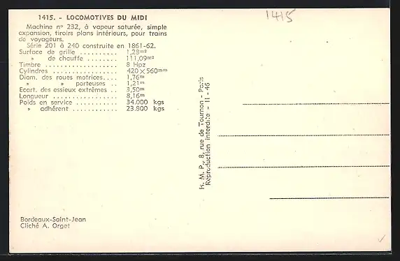 AK Machine No. 232, französische Eisenbahn