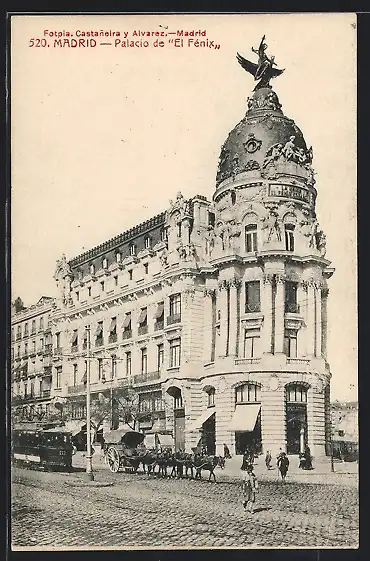 AK Madrid, Palacio de El Fénix, Strassenbahn