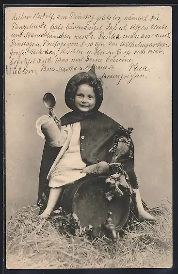 AK Mädchen als Münchner Kindl auf einem Fass sitzend