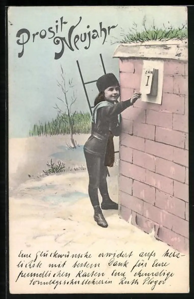 AK Mädchen als Schornsteinfeger wünscht Prosit Neujahr