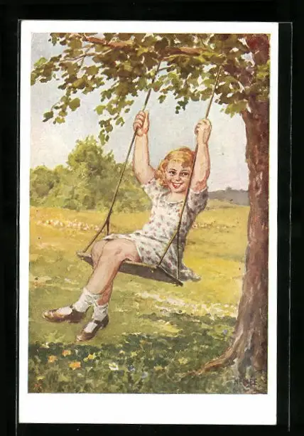 AK Mädchen auf einer Schaukel