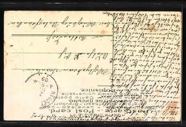 gelaufen 1909, Briefmarke entfernt, Bugspur re. unten, guter Zustand