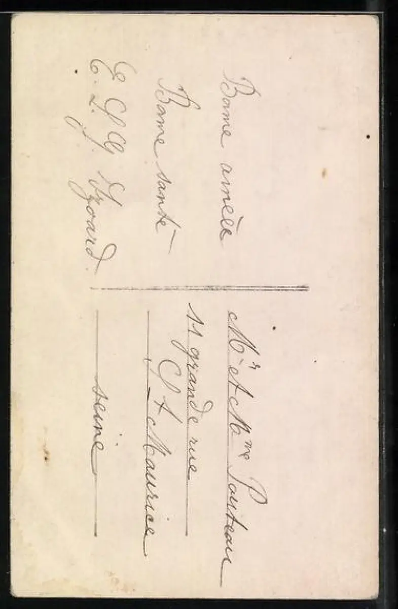 Personenbezogene Daten auf der Rückseite der Karte wurden durch blauen Textmarker unkenntlich gemacht. Die blauen Stellen sind auf die Vorderseite durchgeweicht und wirken sich negativ auf das Postkartenfoto aus