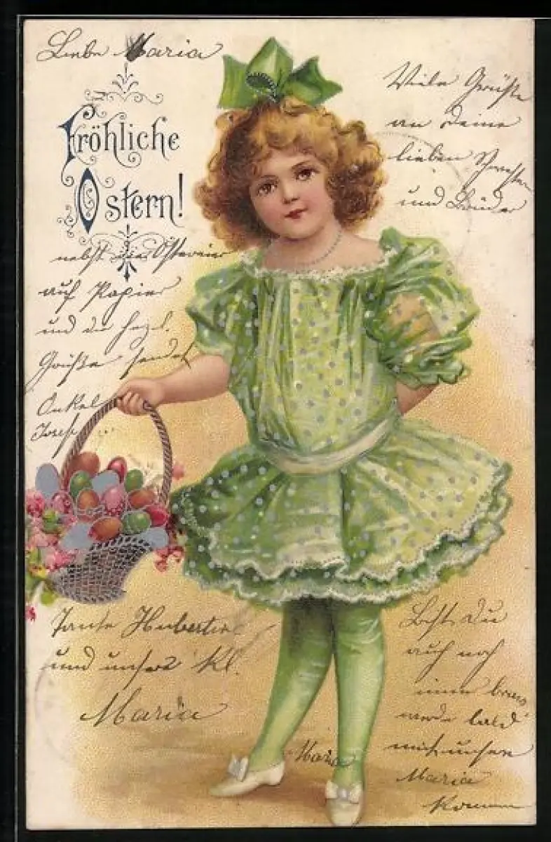 AK Mädchen mit Osterkörbchen