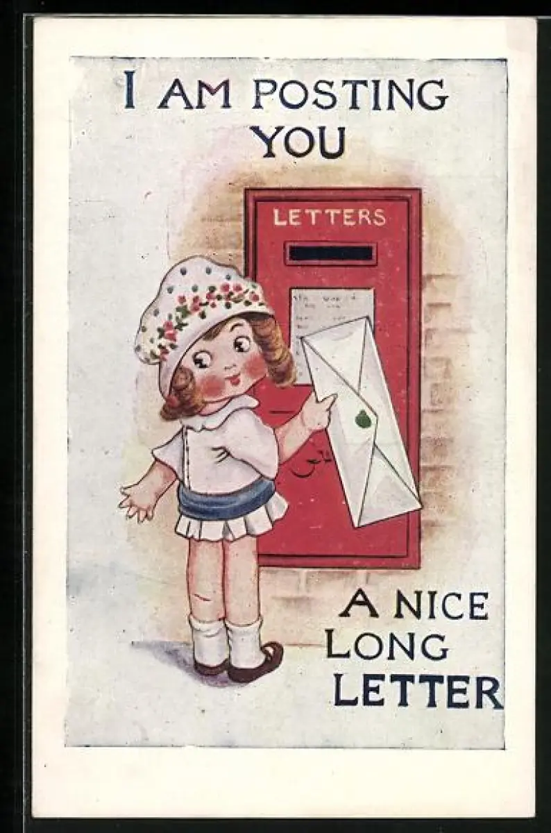 AK Mädchen mit riesigem Brief an einem Briefkasten, I am posting you a nice long letter