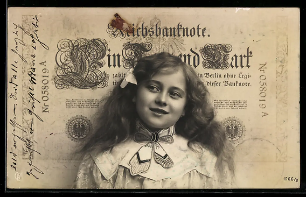 AK Mädchen vor Geldschein über eintausend Mark